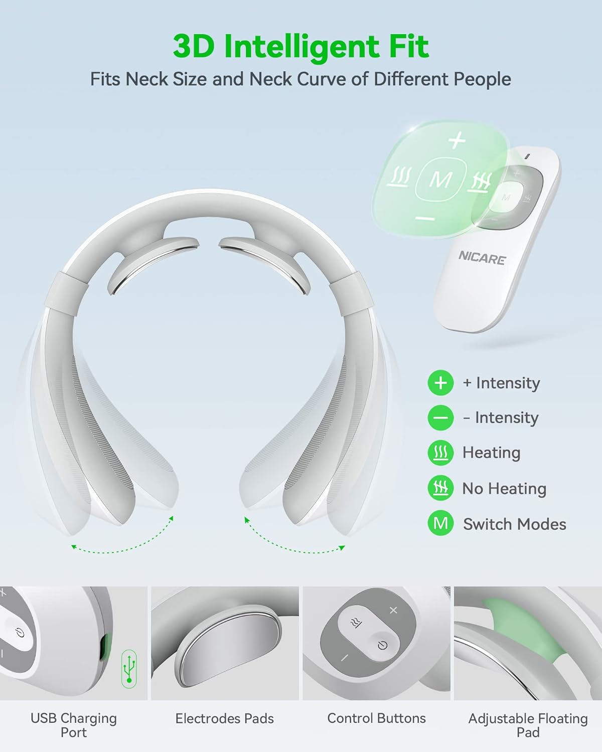 - Design ergonomique : le masseur de cou électrique est en forme de U, fabriqué en silicone souple respirant, parfaitement adapté à la peau du cou humain, offre un toucher confortable pour soulager et détendre la douleur, la raideur et la fatigue des muscles cervicaux, améliorer la qualité du sommeil et favoriser la circulation sanguine.