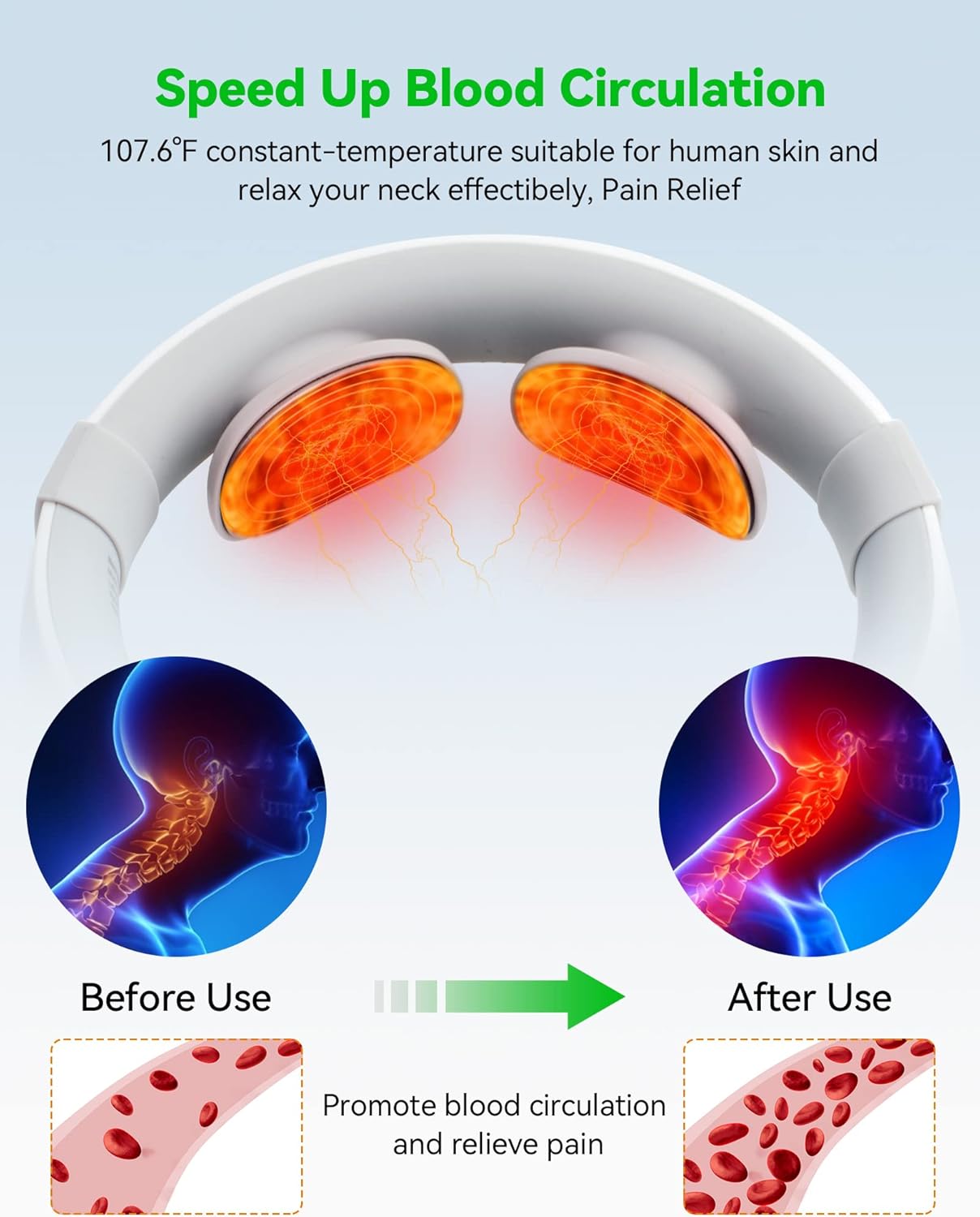 - Design chauffant : 6 points de chauffage à température constante, tout comme pour donner à votre cou une compression chaude, non seulement simuler une véritable expérience de massage confortable, mais également accélérer la circulation sanguine du cou et améliorer l’effet de massage.