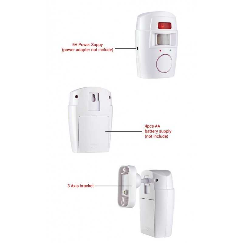 – Le détecteur de mouvements est alimenté par 4 piles AA (non incluses)